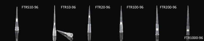 | FTR200-96 | Pointes de pipette à filtre, 200 µL, transparentes et stériles | 96 pointes | 10 racks |